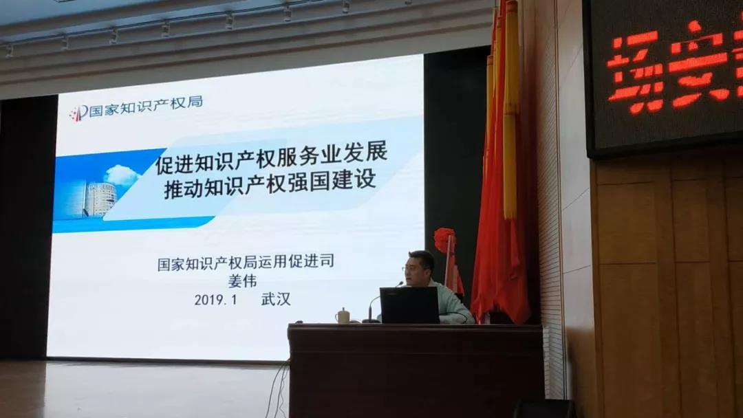 在成立大會(huì)結(jié)束之后,舉行專題培訓(xùn)會(huì)議。姜偉處長受邀做題為《促進(jìn)知識(shí)產(chǎn)權(quán)服務(wù)業(yè)發(fā)展,推動(dòng)知識(shí)產(chǎn)權(quán)強(qiáng)國建設(shè)》的培訓(xùn)講座。培訓(xùn)會(huì)由協(xié)會(huì)秘書長、武漢科技大學(xué)知識(shí)產(chǎn)權(quán)研究所副所長蔡祖國教授主持。